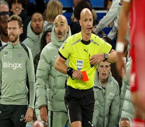 英超第13轮,切尔西主场1-1战平阿森纳,此役安东尼-泰勒向切尔西球员出示了一张红牌和一张黄牌,据统计,切尔西在安东尼-泰勒执法下场均拿牌次数最多。